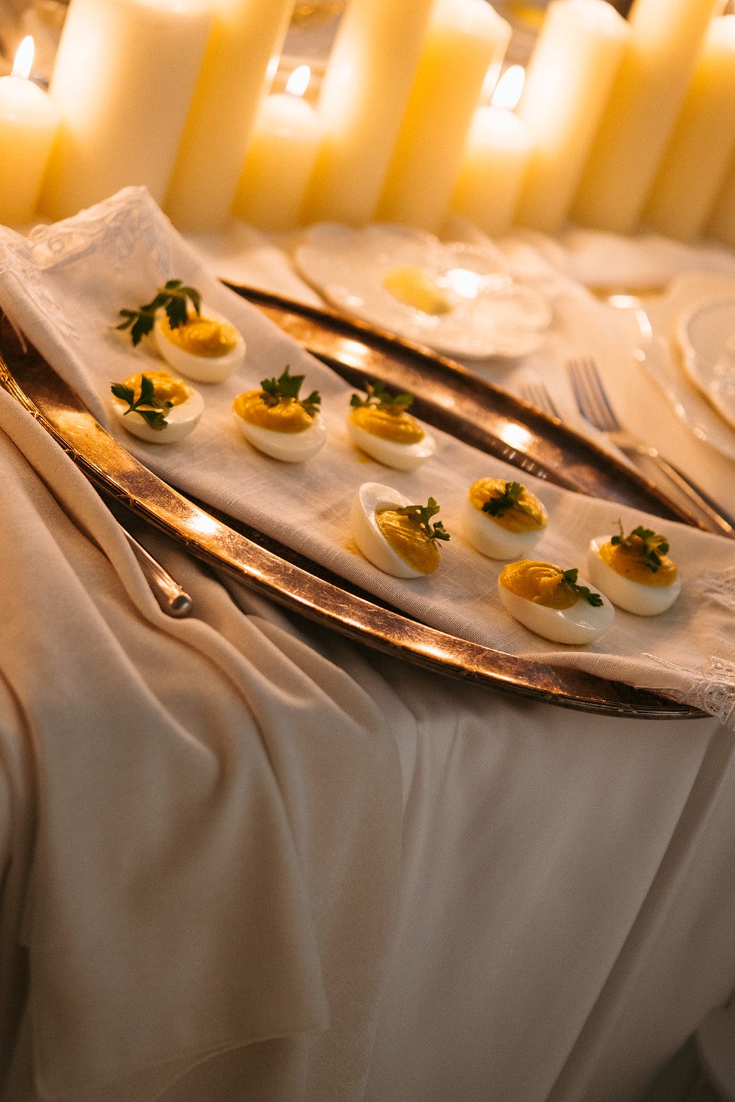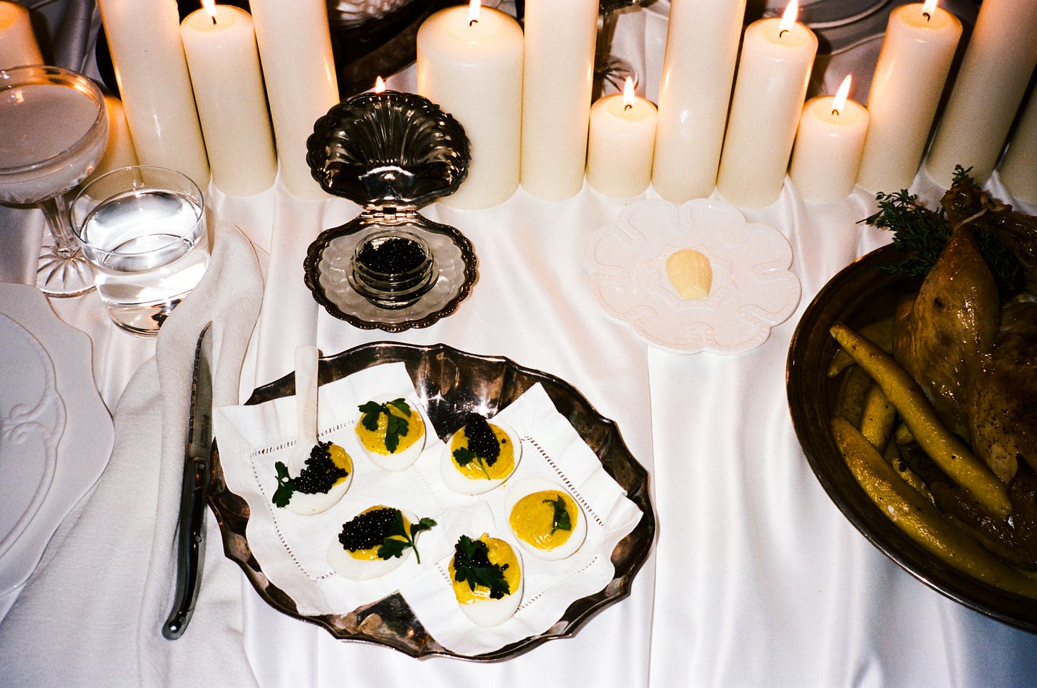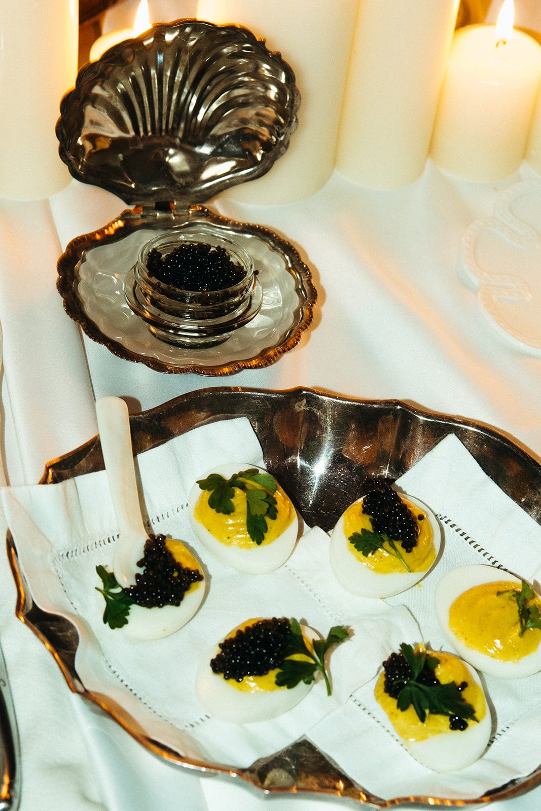 Bedazzle your eggs with caviar! We love Classic White Sturgeon Caviar but any good quality caviar will do. Eggs on eggs:)